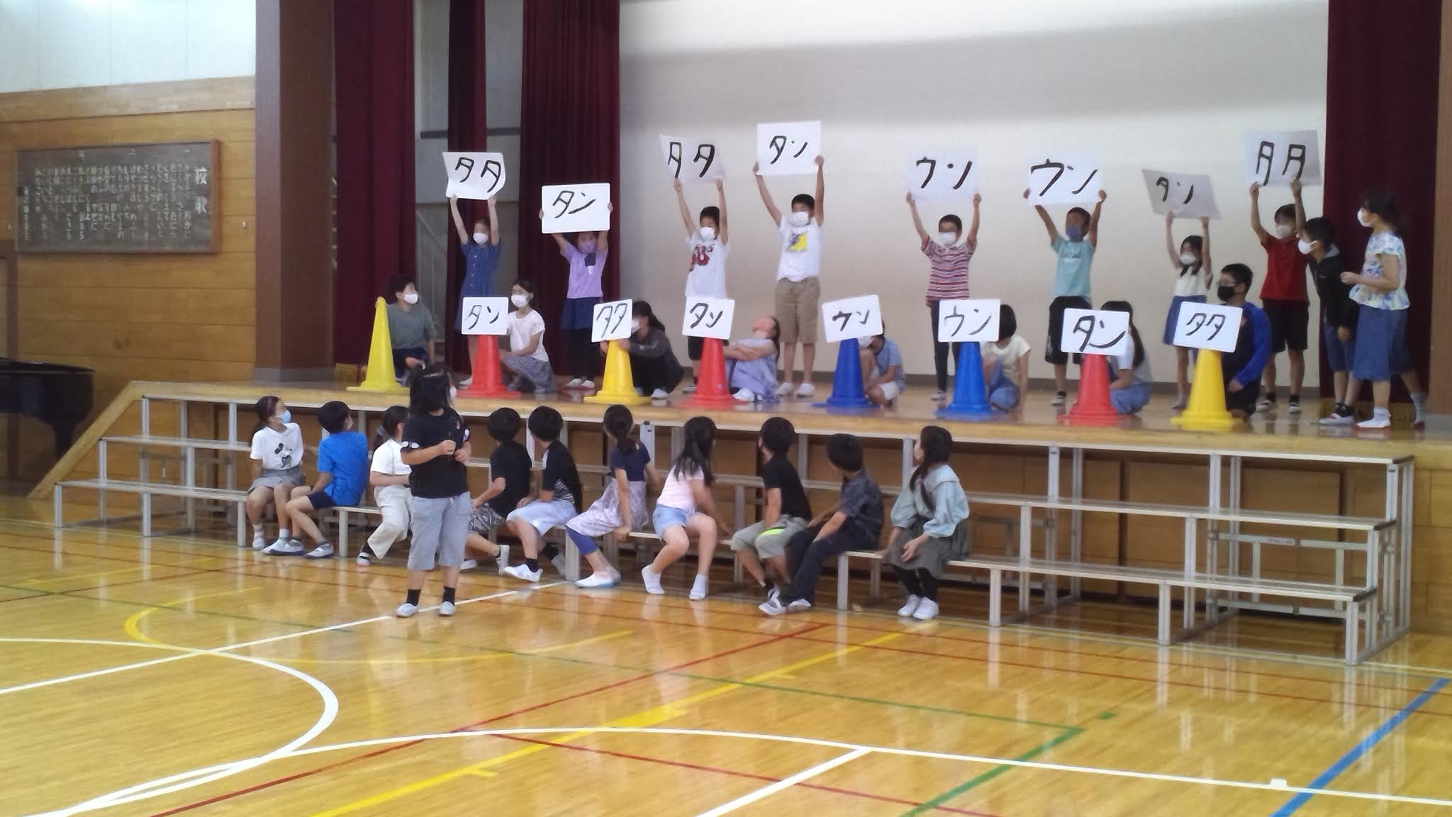 1校時、4年生は体育館で、これまで学習してきた「クラップ」、「すてきな友達」「ありがとうの花」を発表しました。