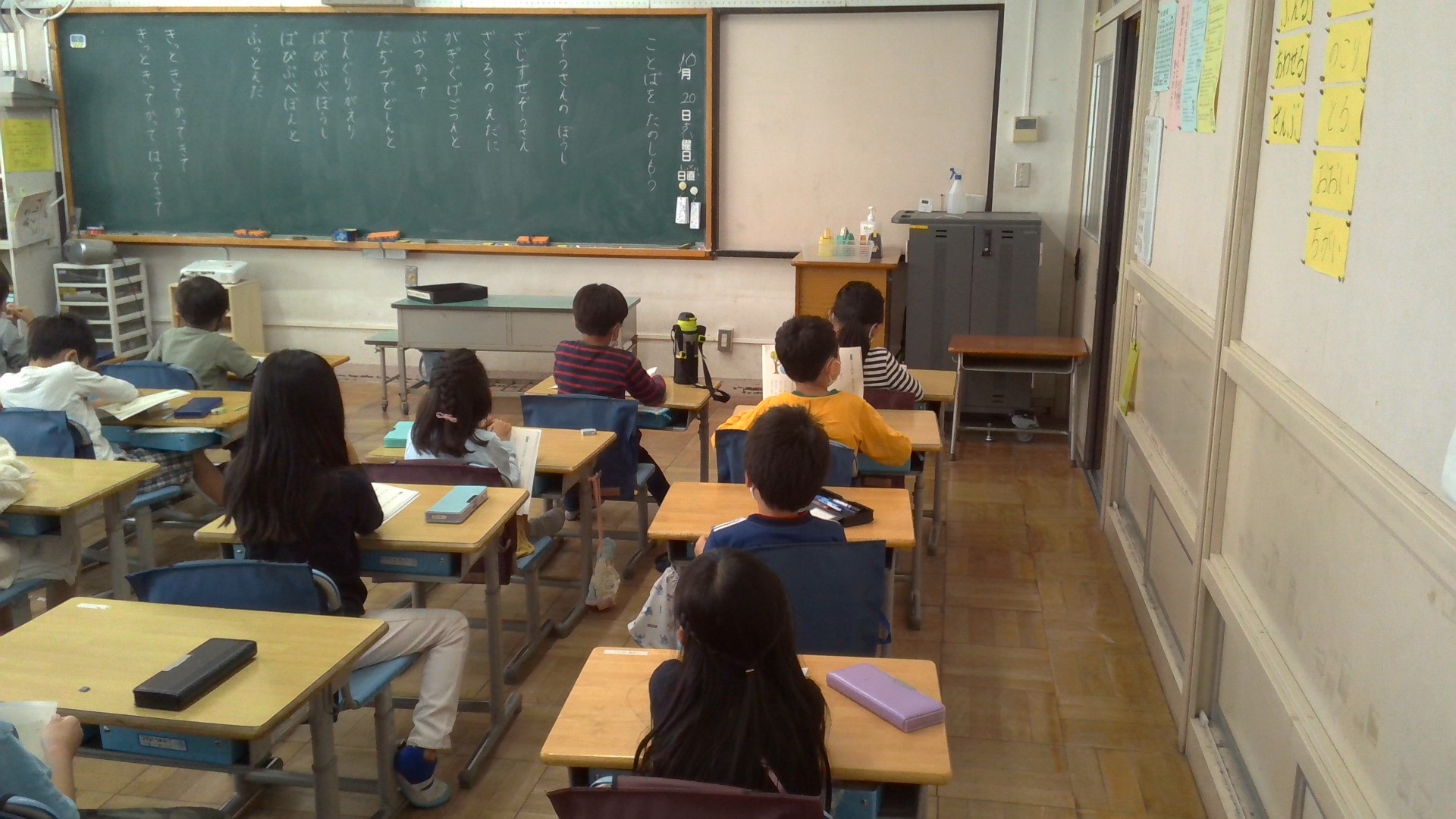1の2は国語で、「ことばをたのしもう」の学習をしていました。