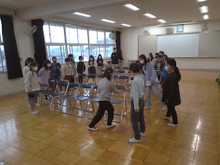 1校時、3の1は多目的室で、ドンジャンをしていました。